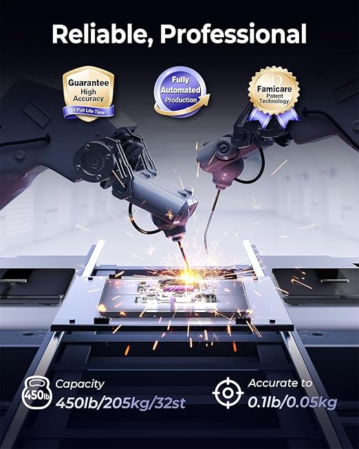 - Guarantee High Accuracy: Enhanced with upgraded ITO technology and Famicare's patented innovation, our scale ensures lifelong precision and accuracy down to 0.1lb. The ITO tech offers a full platform sensor area for accommodating all foot sizes, better than typical four-electrode scales