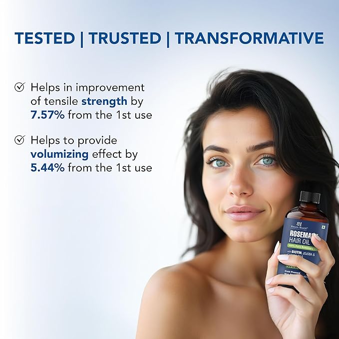- Helps Promote Hair : The organic rosemary oil for hair is infused with ingredients like biotin, jojoba, and castor oils, all of which work together to nourish the scalp and promote stronger, healthier hair
