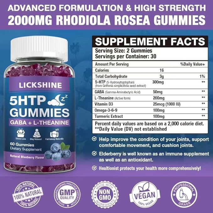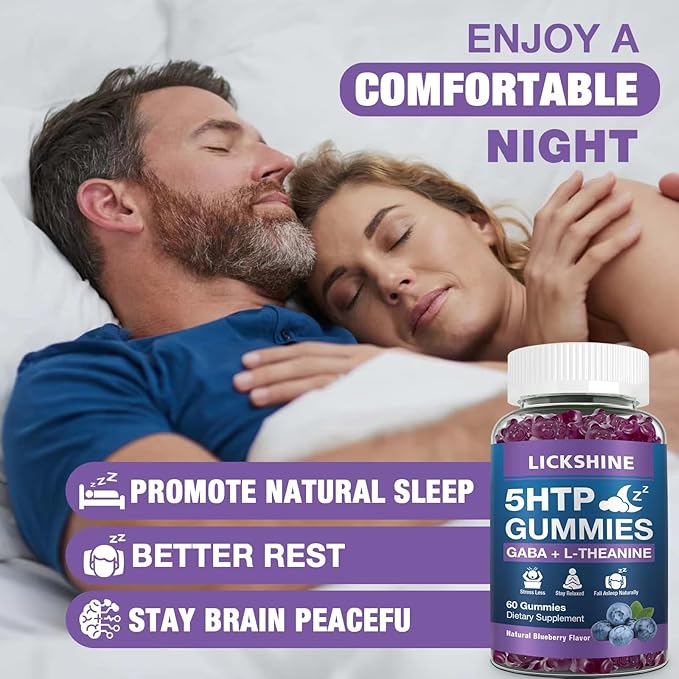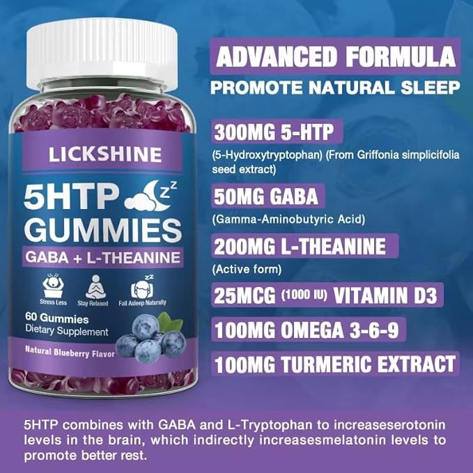 - Promote Natural Zzz: It is well known that 5-HTP is a precursor of serotonin and can be converted into melatonin, which is involved in regulating the natural sleep cycle. Lickshine 5 HTP gummies Combines L-Tryptophan, which can increase the concentration of serotonin in the brain, promote the formation of melatonin for better sleep. Drowsiness or grogginess the morning after taking melatonin,but Lickshine 5HTP gummies will not. With an effective formula to promote natural sleep, Lickshine 5HTP GABA gummies are your best choice!