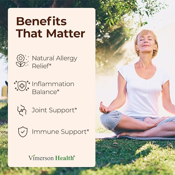 - SEASONAL ALLERGY RELIEF – Quercetin with Bromelain helps balance histamine levels, supporting the body's natural response to allergens. Promotes comfortable breathing during seasonal changes.*