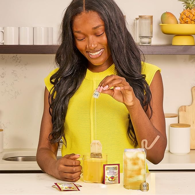 Twinings Mango & Pineapple Herbal Tea Individually Wrapped Bags, 20 Count (Pack of 1), Naturally Caffeine-Free, Enjoy Hot or Iced, 20 Teabags