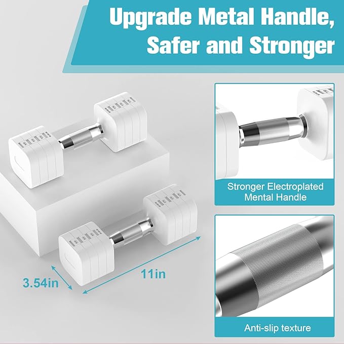 - 【Square Weight Block】Our adjustable dumbbell set has a square shape, allowing you can find more usage of the weight set such as push-ups. In addition, the multiweight dumbbell set will not roll around for safety.