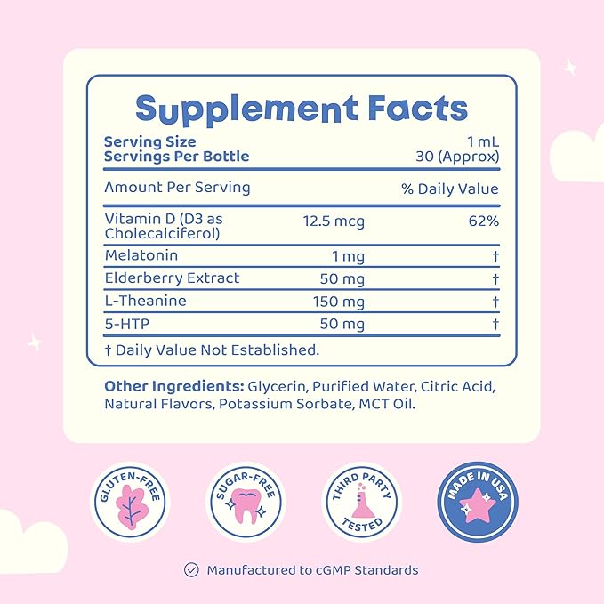 - Improved Sleep Quality: Our unique blend supports sustained, quality sleep, helping children who wake up frequently throughout the night. With 5-HTP to improve occassional sleeplessness and nightime scaries, your child can enjoy uninterrupted, peaceful sleep