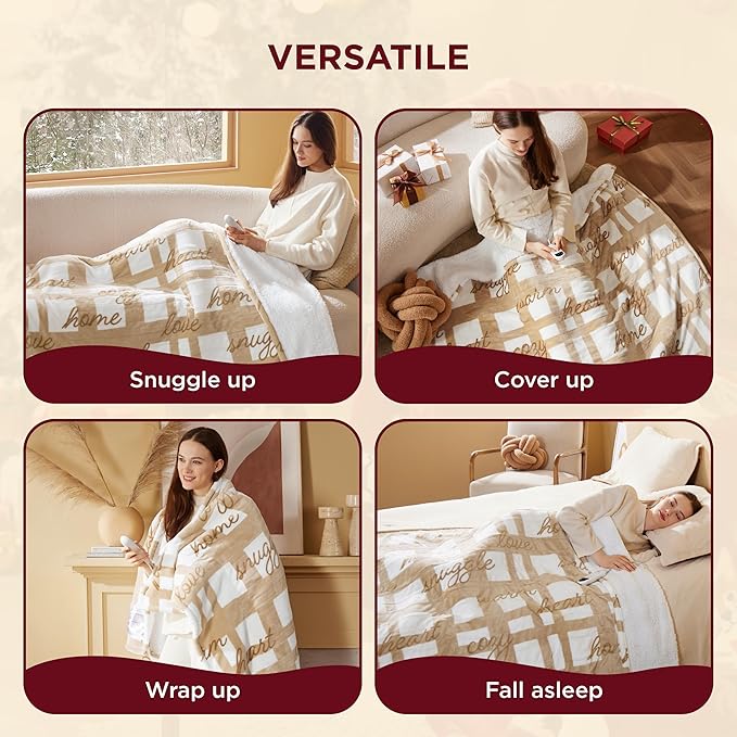 - Versatile: Enjoy the extra warmth you need with this heating blanket while watching a movie on the sofa, adding it to your bed for a good night’s sleep, or using it as a regular blanket