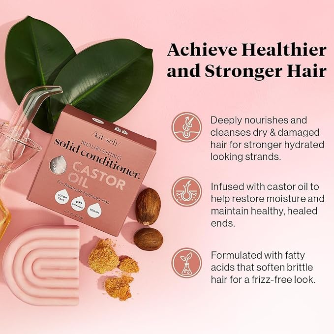 Kitsch Castor Oil Conditioner Bar Soap - Hydrating & Moisturizing Hair Care - Organic Castor Oil Conditioner for Hair Growth & Scalp Nourishment - Silicone & Paraben-Free, Vegan, Made in USA - 2.7oz