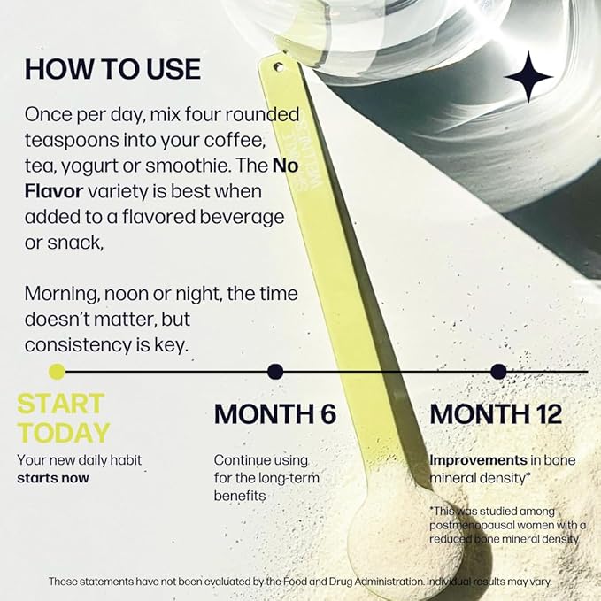 - NO FLAVOR — As a powdered supplement, this collagen with FORTIBONE can be added to many different foods and beverages, including smoothies, tea, water and yogurt without changing the flavor
