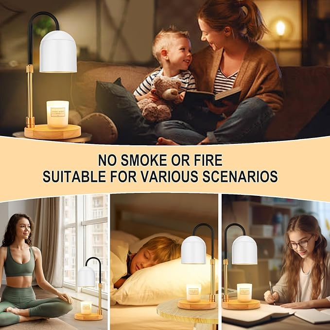 - 【Convenient Dimmable & Timer Function】You can control the melting speed by adjusting the brightness of the candle warmer to regulate the intensity of the scent. The brighter the setting, the faster it melts. In addition, you can also use the timer (2H/4H/8H) to automatically turn off the bulb after the desired time, ensuring safety, energy saving and prolonging bulb life. Creating the perfect ambiance for any occasion or mood, you can be assured of a relaxing and enjoyable scenting experience.