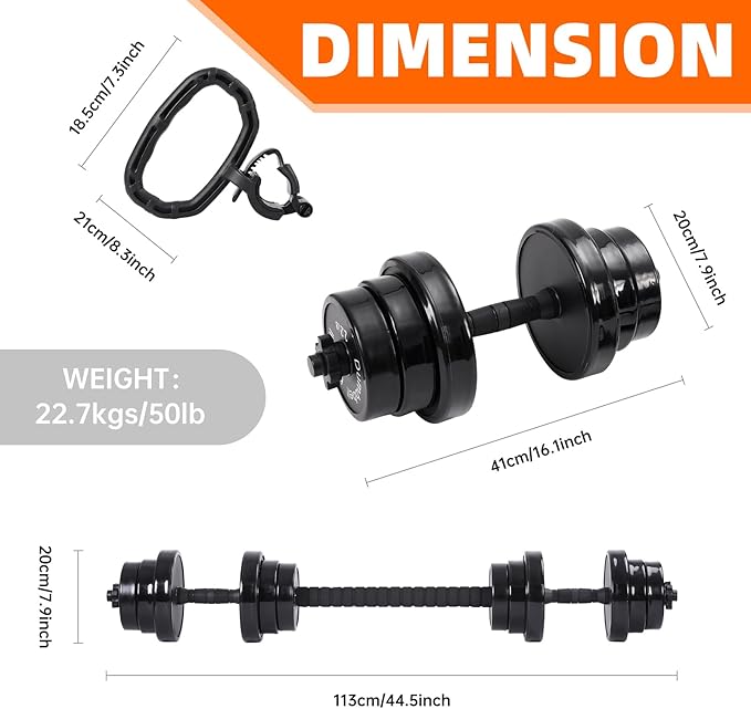 - **Quick & Easy Assembly**: Features a user-friendly design with secure locking mechanisms, allowing you to switch between dumbbell, kettlebell, and barbell configurations in seconds.