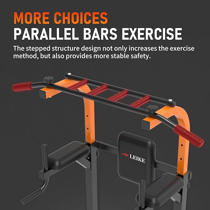 - 【All In One Multifunctional Power Tower】Leikefitness power tower is a multi-functional dip station that supports vertical knee raise, push-ups, dips as well as pull-ups, which help tone and target your arms, core, shoulders, chest, and back for a stronger upper bodyWith a variety of station and positions, you can all-around training abdominal muscles, arm, back, chest, shoulders and leg muscles.
