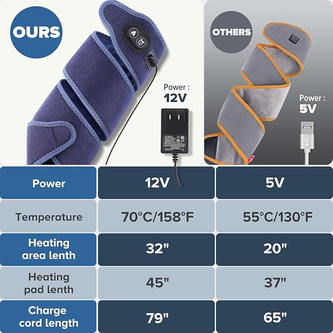 - Please Notice: This heating wrap requires connection to an AC outlet as it has no battery option. The 12V AC plug ensures a consistent and effective heat level, which cannot be achieved with a 5V USB connection. Please ensure this meets your needs before purchasing. If you prefer a wireless option, this may not be the right product for you