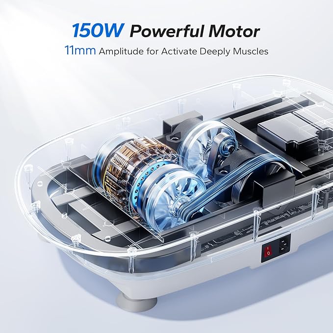- 【Powerful & Stable Performance】 Equipped with a 150W high-power motor and 11mm amplitude, this vibrating plate exercise machine is designed to deliver deep tissue stimulation. The high-quality silicone platform (comfortable & non-slip) and premium ABS body ensure durability. The reinforced anti-slip base prevents shifting and operates quietly for safe, stable home use.