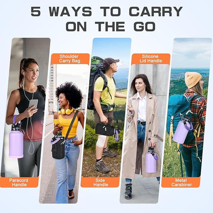 - Triple Wall Insulation - Sweat-proof 1/2 gallon water bottle features a copper-plated triple-wall vacuum insulation that keep drinks stay ice cold up to 48 hours and warm up to 24 hours.
