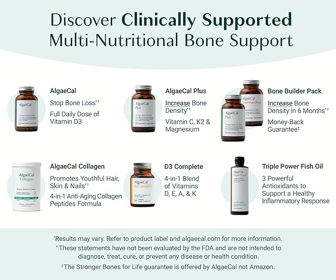 ALGAECAL Collagen - 4 Clinically-Supported Peptides VERISOL®, FORTIGEL®, UC-II®, FORTIBONE®, Anti-Aging Hydrolyzed Collagen Powder, 3 Packs, Made in USA