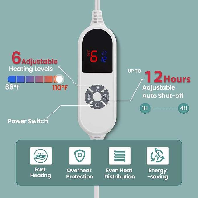 - 6 Customizable Heating Levels: Tailor your warmth to perfection with 6 customizable heating levels. Whether you crave gentle warmth or crave a toastier sensation, this blanket caters to your every desire, making your experience truly bespoke.