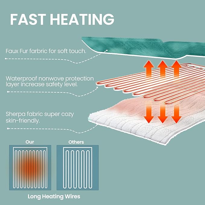 - Fast Heating: With lightning-fast heating capabilities, this electric blanket quickly envelops you in a warm embrace, banishing winter’s chill in an instant. Say goodbye to shivering and welcome a world of toasty comfort.