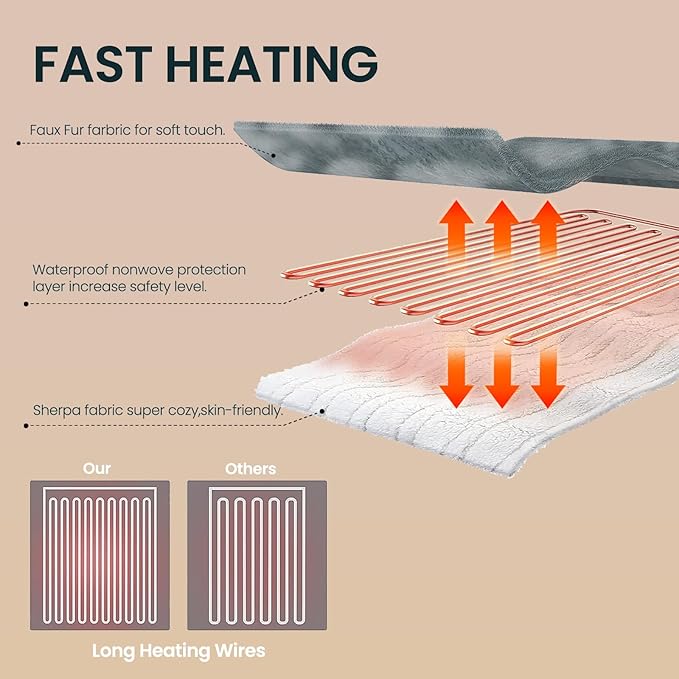 - Fast Heating: With lightning-fast heating capabilities, this electric blanket quickly envelops you in a warm embrace, banishing winter’s chill in an instant. Say goodbye to shivering and welcome a world of toasty comfort.