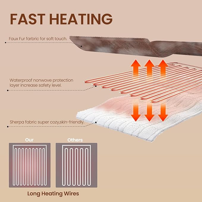 - Fast Heating: With lightning-fast heating capabilities, this electric blanket quickly envelops you in a warm embrace, banishing winter’s chill in an instant. Say goodbye to shivering and welcome a world of toasty comfort.