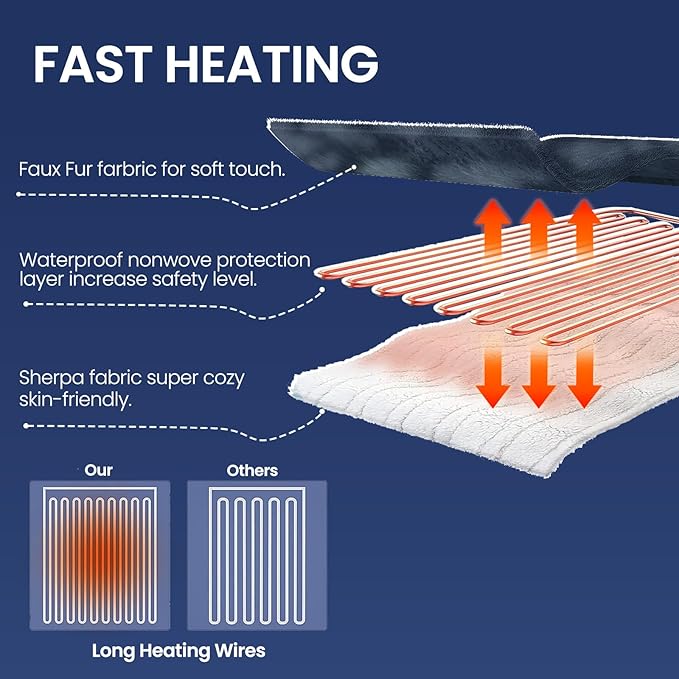 - Fast Heating: With lightning-fast heating capabilities, this electric blanket quickly envelops you in a warm embrace, banishing winter’s chill in an instant. Say goodbye to shivering and welcome a world of toasty comfort.