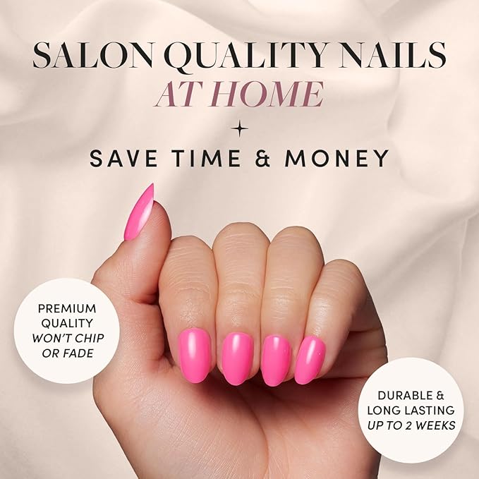 Glamnetic Press On Nails - Hot Pink | Opaque Bright Neon Pink Short Oval Fake Nails, Salon Quality | 15 Sizes - 30 Nail Kit