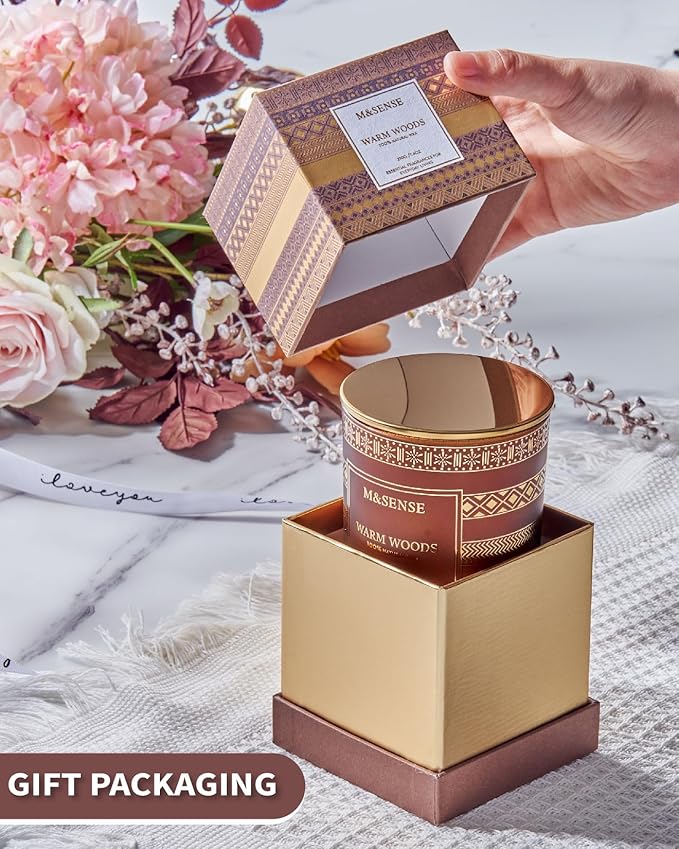 M&SENSE Christmas Candles - Warm Wood Scented Candle for Home, 7.4 Oz, 45 Hour Burn Time, Fall Winter for Men & Women, Xmas Thanksgiving Gift