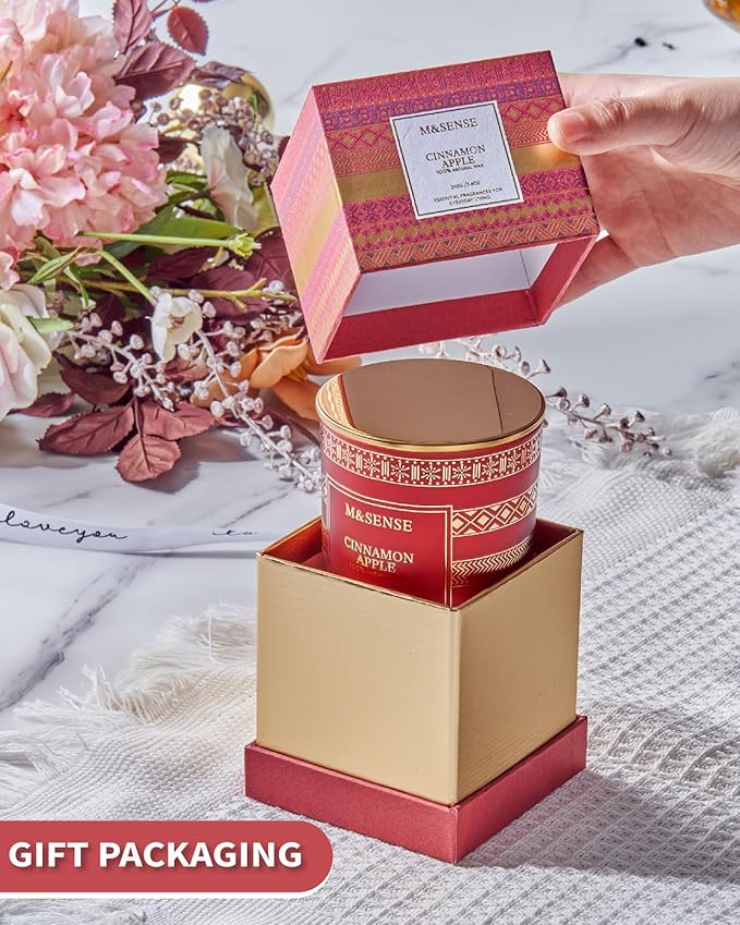M&SENSE Christmas Candle, Cinnamon Apple Scented, Natural Non Toxic Soy Candle for Home Scented, Xmas Thanksgiving Gift, 45 Hour Long Burning Time, Luxury Gift for Men Women, 7.4 Oz