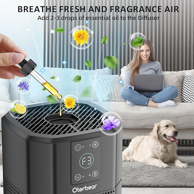 Air Purifiers for Bedroom Home Up to 1350 Ft², Oterbear Room Air Cleaner with H13 True HEPA Filter with Sleep Mode, Aroma Function, Ambient Light, Remove Dander Smoke Pollen Odor, Black