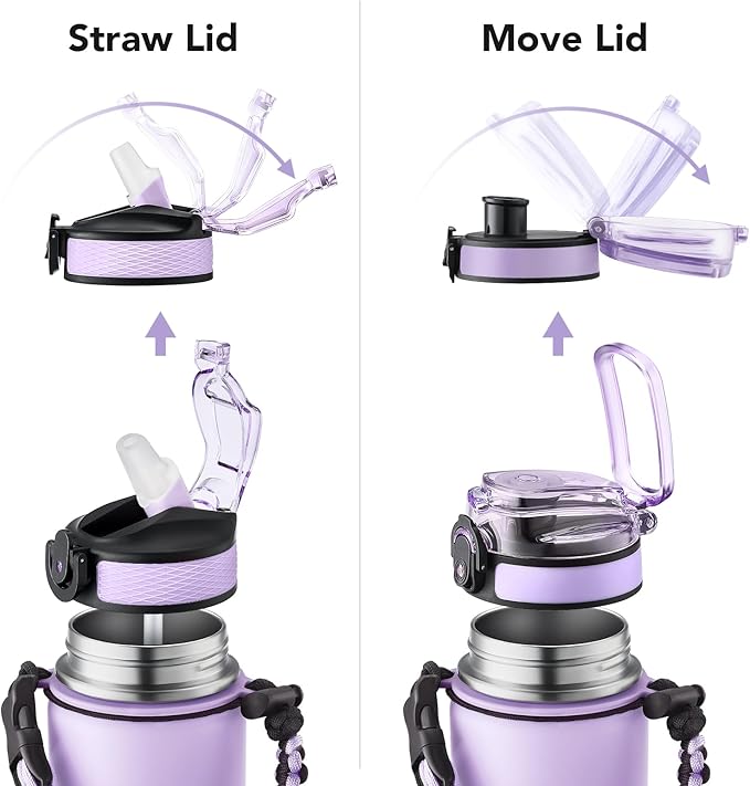 - Insulated water bottle 24 oz: 24 oz insulated water bottle has a matte finish and comes with 2 lids (Lid with Straw/No Straw) and a Paracord handle for easy portability; Its wide mouth makes it easy to fill, pour, and clean, and the leak-proof cap ensures worry transport.