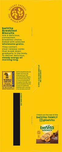 - One value pack box with 12 packs, 4 biscuits per pack, of belVita Golden Oat Breakfast Biscuits (packaging may vary)