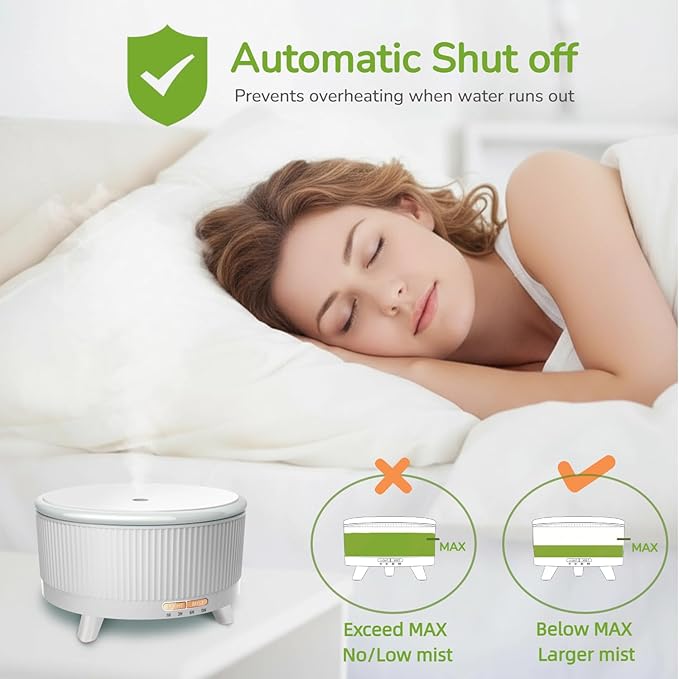 - QUIET WORKING, ENHANCING SLEEP & WORK QUALITY: With nano spray technology and noise reduction technology, the oil diffuser works at only 25 decibels, allowing you to enjoy a peaceful environment. Use with essential oils to improve sleep quality and work efficiency.