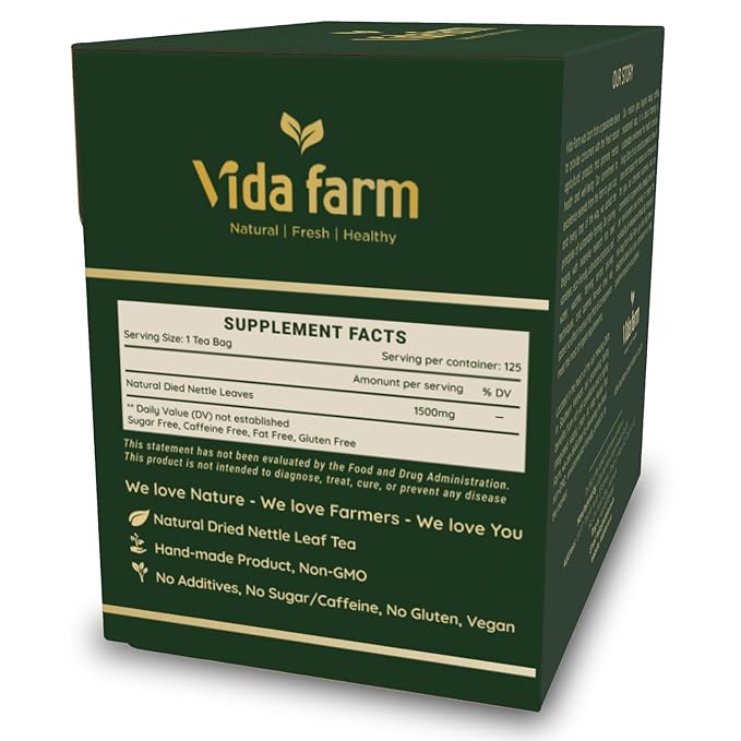 VIDA FARM 125 Nettle Tea Bags, 100% Natural Nettle Leaf Tea, Dried Stinging Nettle Tea, Stinging Nettle Leaf Herbal Tea, No Caffeine, No Sugar, No Gluten, Vegan