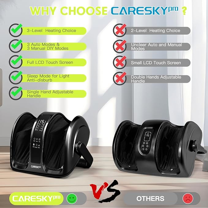 - 1-Button 360° Adjustable Handle - With a 360° single-hand adjustable handle, you can massage your feet, calves, and hands freely under different body positions. The remote rule makes it more convenient to use. And the upgraded full-screen is more impactful and stunning.
