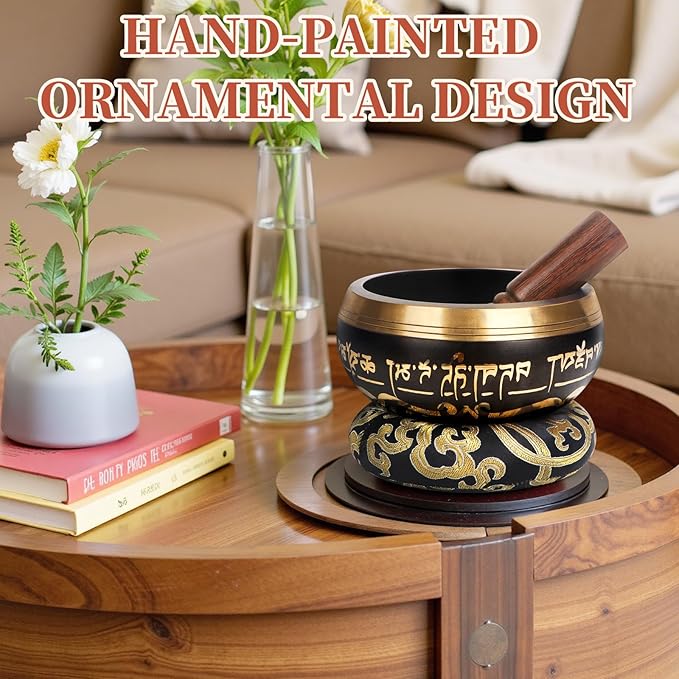 - Hand-Tuned Pure Sound: With its long-sustained, perfectly balanced, and deeply comforting tones, this singing bowl invites you to discover inner peace and harmony. Each singing bowl is meticulously tuned to produce a rich, resonant sound that enhances your meditation and sound therapy sessions.