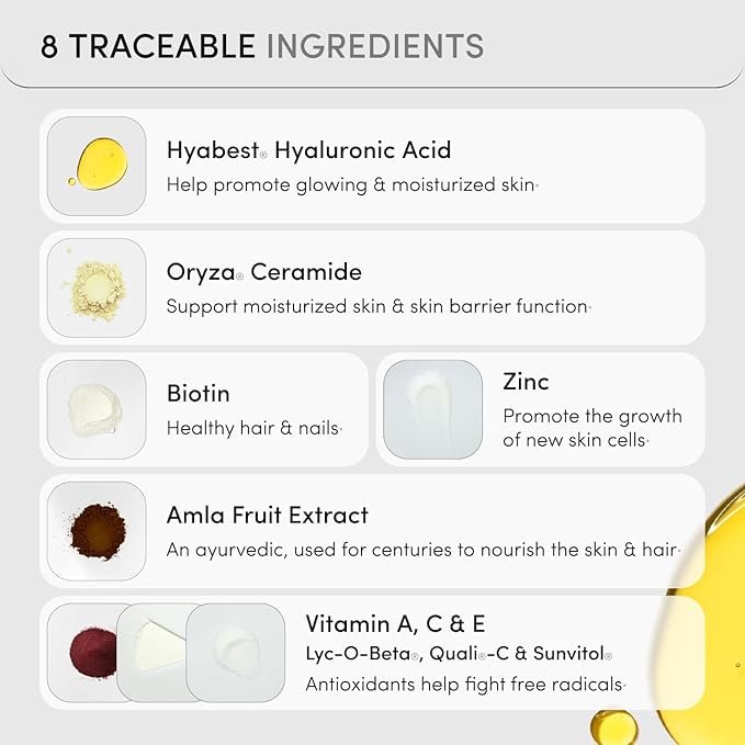 - Sustainable, Clean Beauty Supplements: Ready To GLOW hair skin and nails vitamins comes in 100% plastic-free packaging and is free from GMOs, gluten, dairy, artificial flavors, and unnecessary additives.