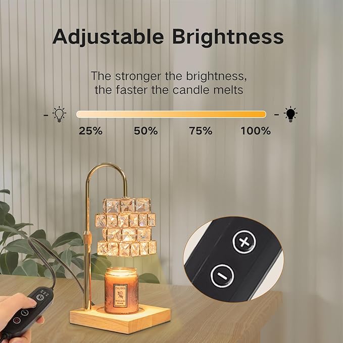 - 【DIMMER 4-LEVEL BRIGHTNESS】-Our candle melting lamp can be dimmer 4 level of brightness from 0-100 by switch, adjust the temperature for melting the candle. The higher brightness the faster melting speed, scented the fastest and strongest fragrance.
