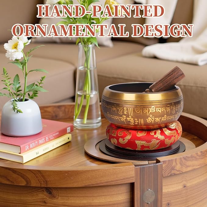- Hand-Tuned Pure Sound: With its long-sustained, perfectly balanced, and deeply comforting tones, this singing bowl invites you to discover inner peace and harmony. Each singing bowl is meticulously tuned to produce a rich, resonant sound that enhances your meditation and sound therapy sessions.