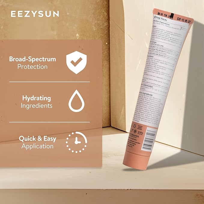 - Lightweight Hydration: With Hyaluronic Acid to attract moisture, Aloe Vera to soothe, and Kalahari Melon to refresh, EEZYSUN BARE Tinted Sunscreen SPF 50 leaves your skin feeling moisturized and smooth