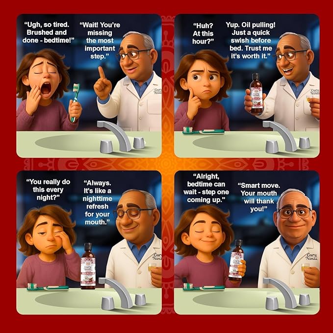 - HOLISTIC ORAL CARE ROUTINE: GuruNanda Ashwagandha Oil Pulling helps to freshen breath, promotes happy gums, and provides a calming oral wellness experience. It’s designed to be a supportive part of your daily oral care routine, complementing brushing, flossing, and other practices.