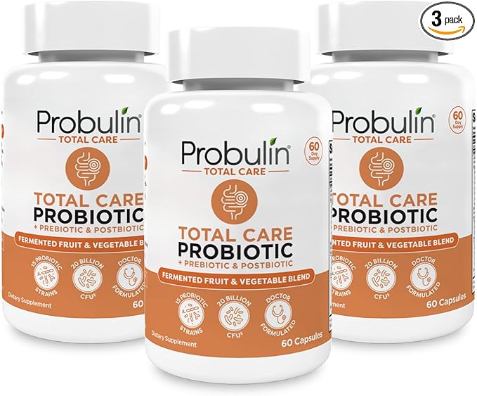 Probulin Total Care Pre + Pro + Postbiotic, 20 Billion CFU, 60 Vegan Capsules (Pack of 3)