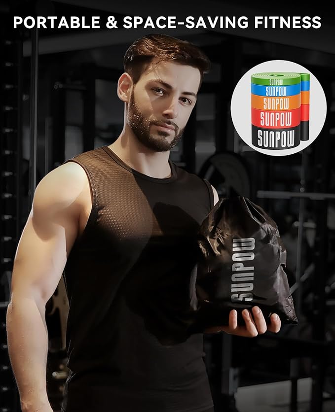 - [Perfect for Beginners to Pros]:SUNPOW pull up bands include 5 bands with different resistance levels, ranging from Green (5-30 lbs) to Black (60-170 lbs), catering to all fitness levels from beginners to advanced users. Easily switch or combine bands for customized resistance.