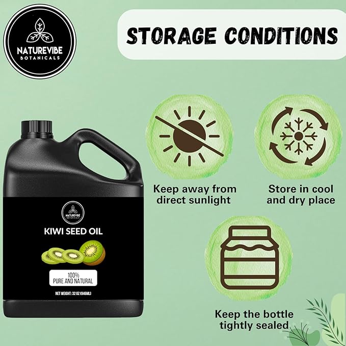 - ✅ Naturevibe’s Kiwi Seed Oil is 100% pure, free from fillers or additives, and is specifically crafted for relaxing massages and skin care.