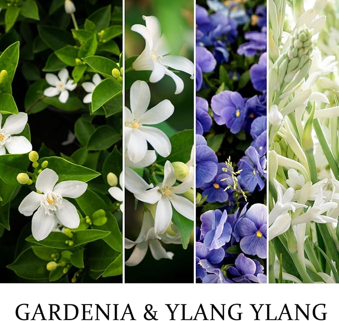 - Gardenia & Ylang Ylang Candle: Surrender to the intoxicating embrace ofvelvety gardenia blossoms and exotic ylang ylang, harmoniously blended withdelicate jasmine and green violet leaves. This exquisite floral candletransforms your space into a luxurious tropical oasis, where heady whiteflorals dance with creamy, slightly spicy undertones to create a truly sensualand rejuvenating aromatic experience