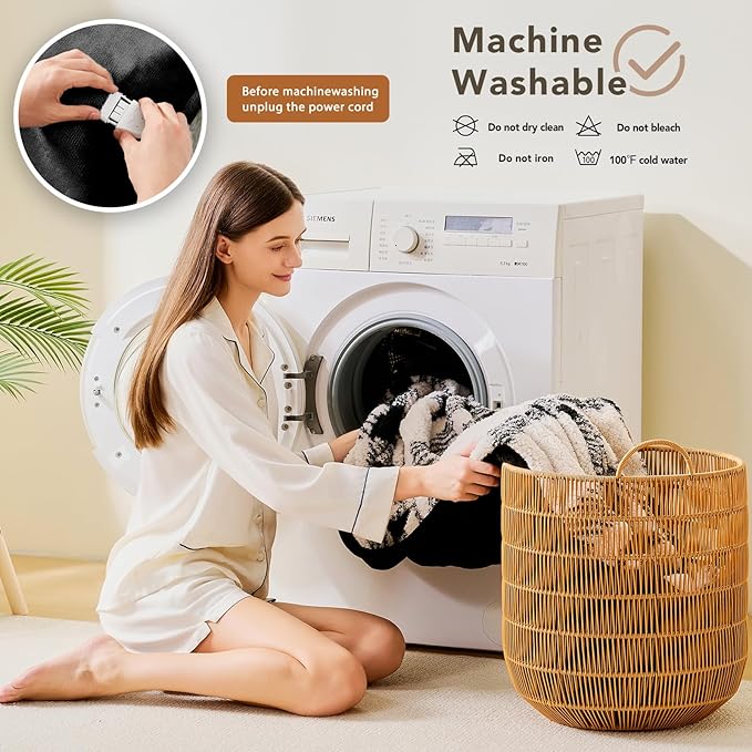 - MACHINE WASHABLE: The heating blanket can be cleaned by machine. Before cleaning, please make sure to separate the power cord from the heating blanket. After confirming that the electric blanket is completely dry, reconnect the controller and use it. You can contact us if you have any questions