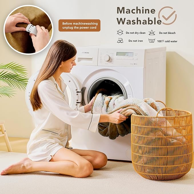- MACHINE WASHABLE: The heating blanket can be cleaned by machine. Before cleaning, please make sure to separate the power cord from the heating blanket. After confirming that the electric blanket is completely dry, reconnect the controller and use it. You can contact us if you have any questions
