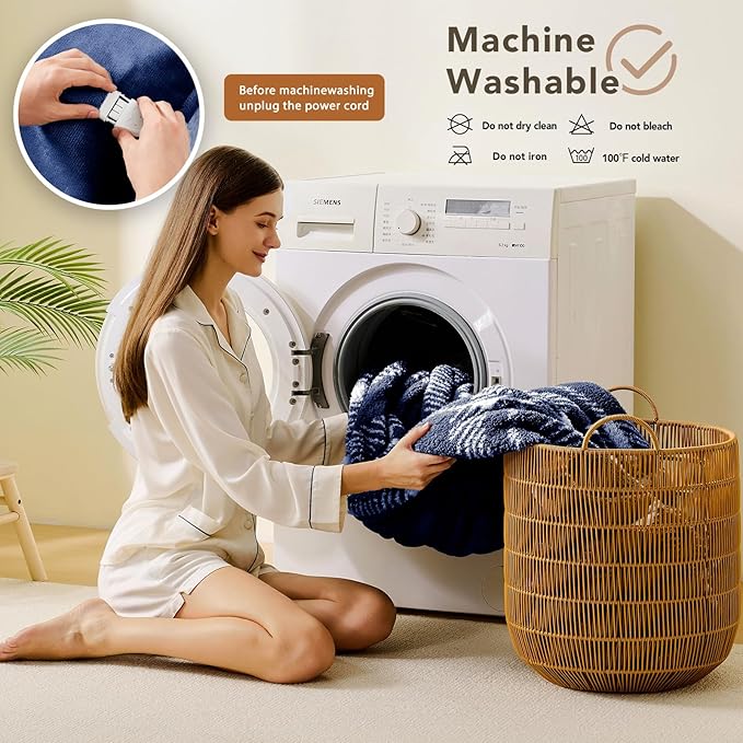 - MACHINE WASHABLE: The heating blanket can be cleaned by machine. Before cleaning, please make sure to separate the power cord from the heating blanket. After confirming that the electric blanket is completely dry, reconnect the controller and use it. You can contact us if you have any questions