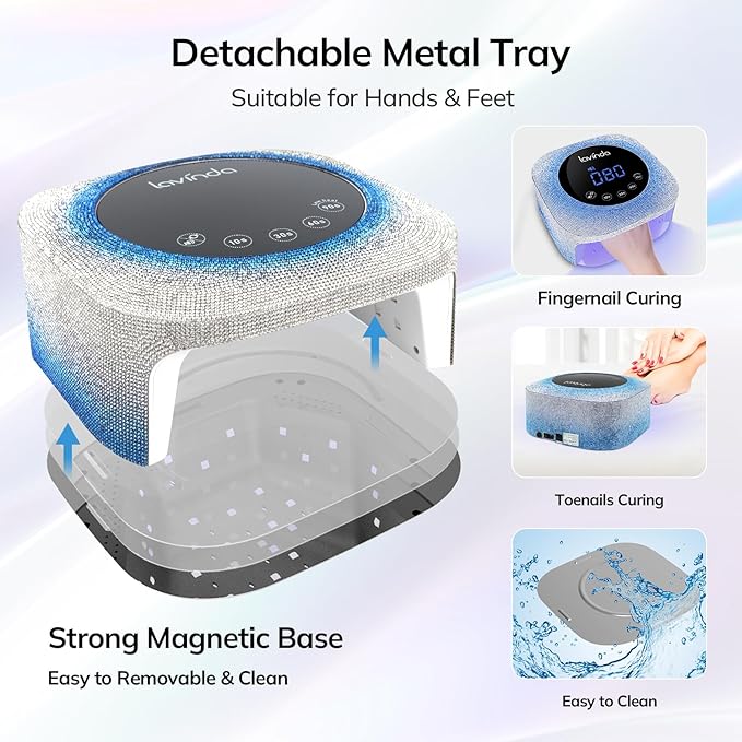 - 【Curing All Gel Nail Polishes】 This nail dryer can fast cure with all nail gel brands, e.g.Base Coat, Top Coat, Color Gel, Hard Gels, Poly Gels, Builder, Acrylic, Sculpture gel, gem glue, etc.(not for regular nail polish.) Enjoy high-quality salon manicures at home with your friends and family. Provide 12 months warranty, if you have any problem with Lavinda gel nail polish curing lamps, please contact us through "contact sellers", and we will offer you a satisfactory solution within 24 hours.