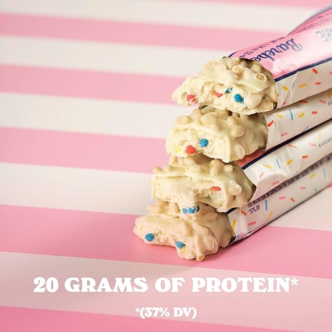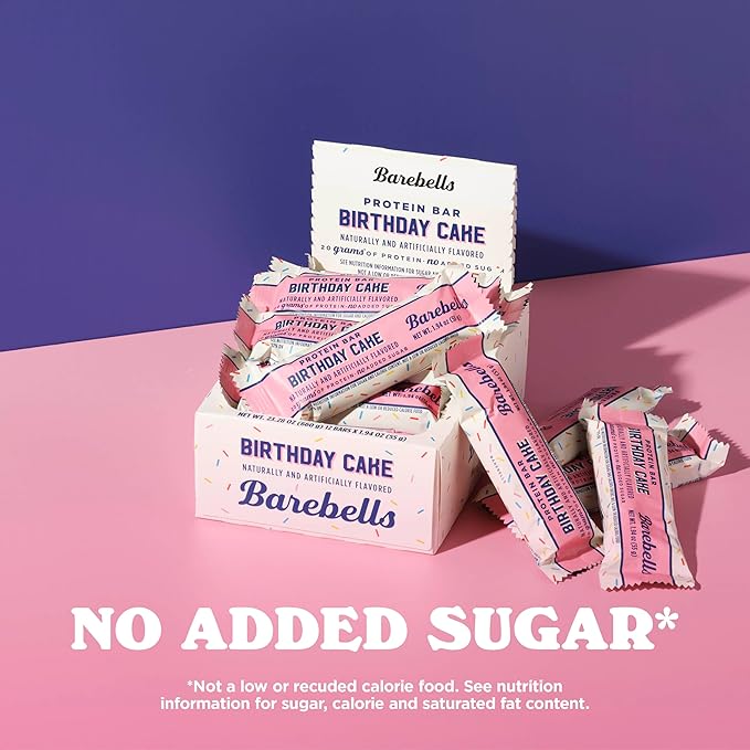 - BAREBELLS BIRTHDAY CAKE PROTEIN BAR - Indulge in the delightful taste of Barebells Birthday Cake Protein Bar, where every bite bursts with the nostalgic flavor of a classic birthday cake. The harmonious blend of rich vanilla and smooth frosting creates a heavenly treat. Perfectly balanced, it's a sweet escape that satisfies your cravings without the added sugar.*
