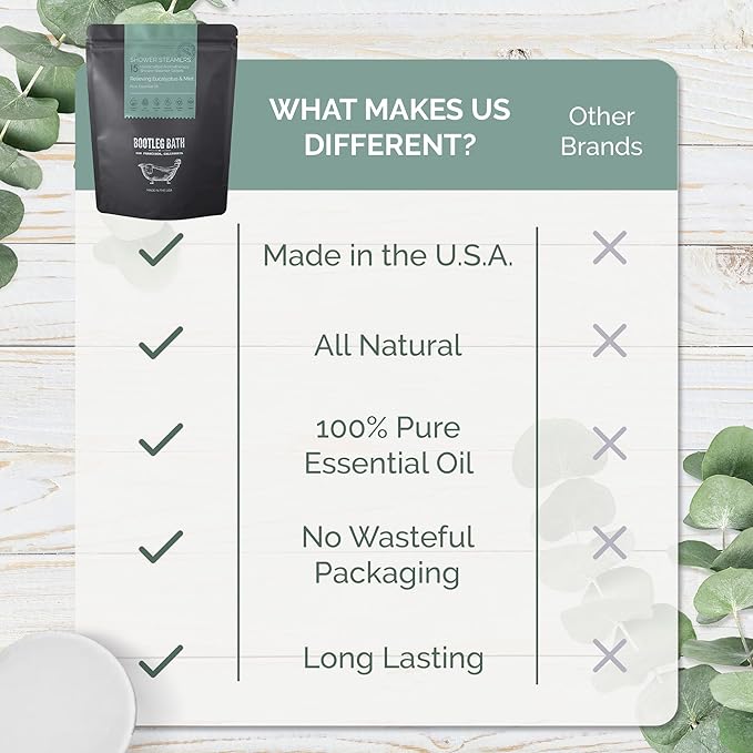 - Aromatherapy - Each shower steamer is made using 100% Pure Essential Oils and Natural Menthol to calm your mind and refresh your senses, that will leave you rejuvenated with each use.
