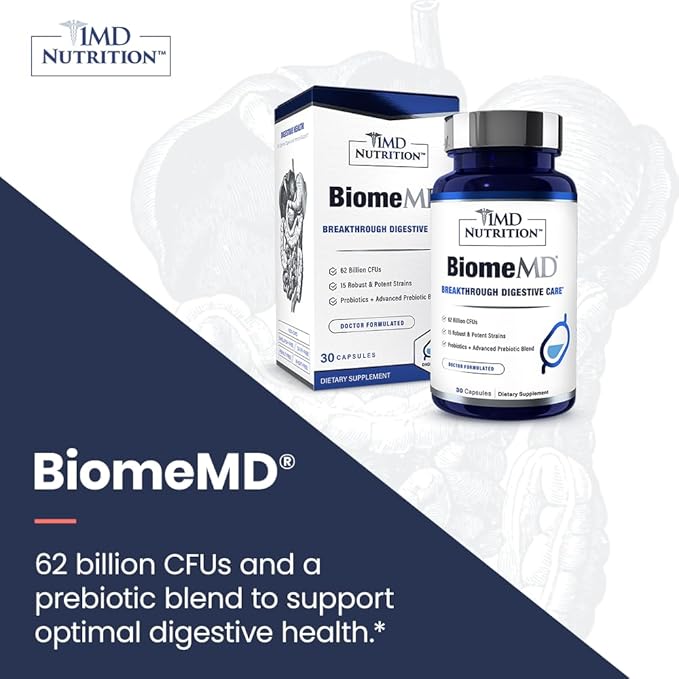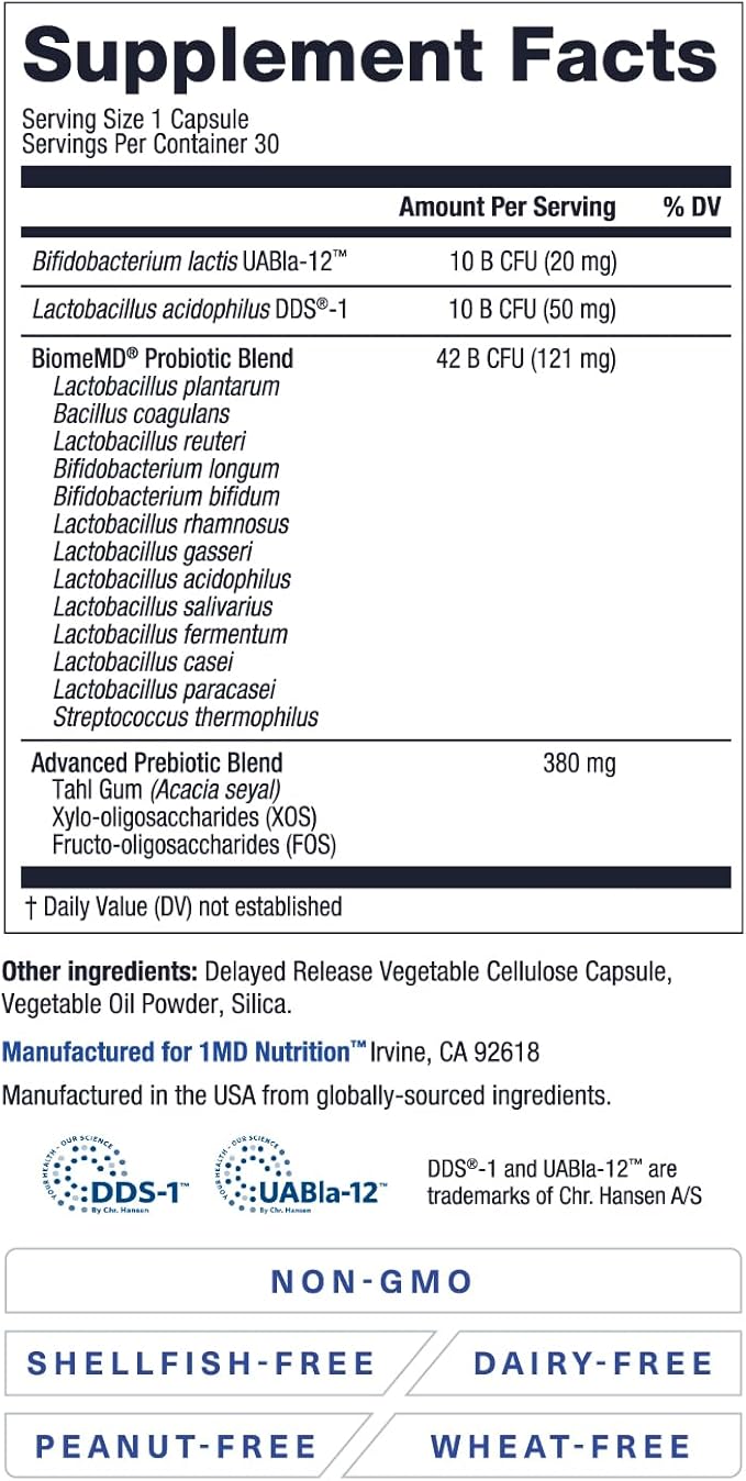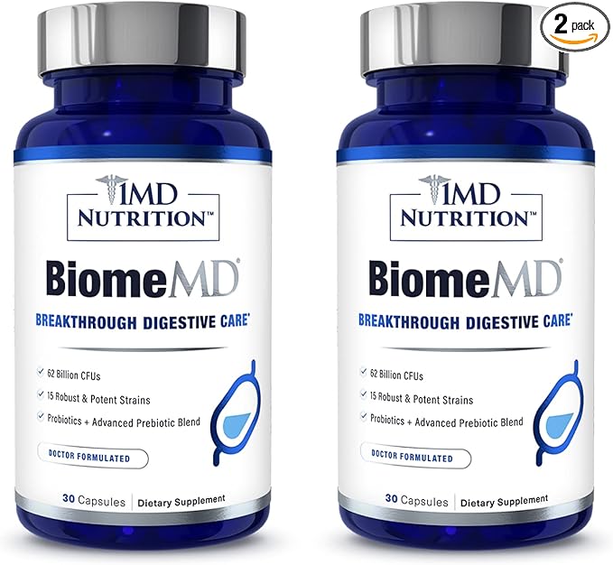 1MD Nutrition BiomeMD Probiotics | 62 Billion CFUs, 15 Comprehensive Strains - Pro & Prebiotics | Doctor-Formulated for Digestive Health & Immune Support | 60 Capsules