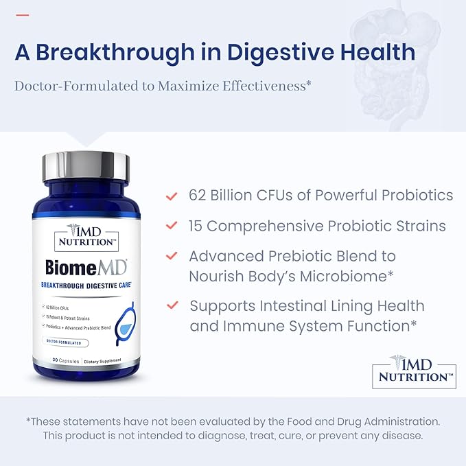 - Doctor-Formulated for Potency: Formulated by a board-certified physician, this breakthrough 1MD Nutrition formula delivers a whopping 62 billion CFUs of 15 robust probiotics.* Every capsule provides unparalleled, integrative digestive support and critical immune system health.*