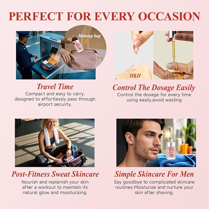 - 【TRAVEL-FRIENDLY & EASY TO USE】—With its lightweight, non-greasy texture, this serum absorbs quickly into the skin.After cleansing, take one capsule, cut the protruding part of the capsule with scissors or gently rotate and unscrew the protruding part of the capsule by hand,apply it to the facial skin and massage until it is completely absorbed